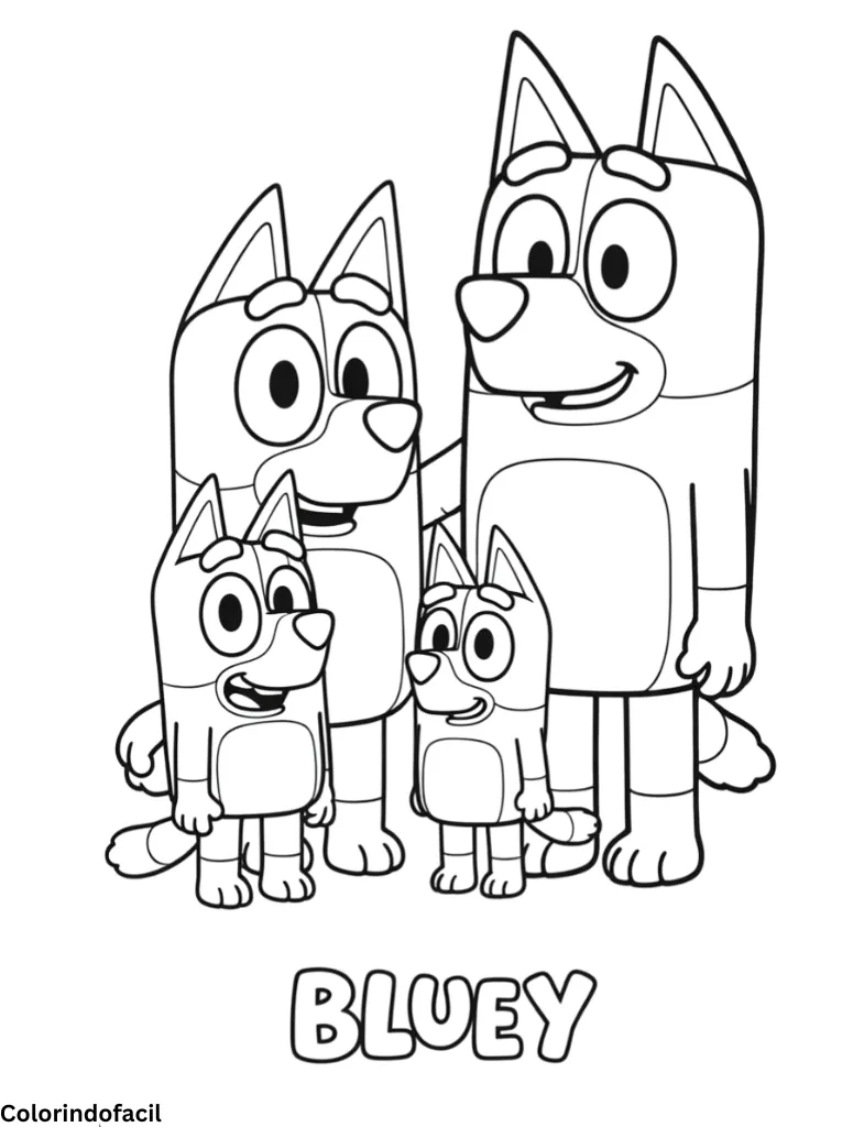 Desenhos de bluey para imprimir e colorir com a família Heeler